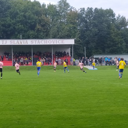 Ve Stachovicích jsme chtěli prodloužit naší sérii a odvézt si body z dalšího venkovního utkání. Kvalita hřiště ( malé, měkké, nerovné) určitě více vyhovovala domácím, kteří jsou zvyklí. Navíc v těchto podmínkách se určitě lépe boří, než tvoří. Vytvářeli jsme si zase šance, ale v koncovce nám míč odskakoval od kopaček. Domácí hrozili spíše z brejků a v 36. minutě se jim podařilo vstřelit se štěstím (od tyče) první gól zápasu. Do druhé půlky jsme šli s tím, že chceme rychle vyrovnat. Opět jsme měli tlak i šance, ale podařilo se nám prosadit až v 72. minutě Sochičem. Po vyrovnání jsme byli „na koni“ a ještě více se tlačili za druhým gólem, což ale vedlo i k tomu, že soupeři se párkrát podařilo jít do rychlého přečíslení a nám remízu několika super zákroky držel gólman Filip Morys. Dvě minuty před koncem, když už vše směřovalo k dělbě bodů jsme ale jeden brejk nevyřešili a se stavem 2:1 pro domácí se už moc pak dělat nedalo-nebyl čas.